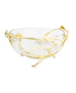 This magnificent glass bowl bring an extra aura to every display setting. It is decorated with some glossy gold-tone twigs beautifying the glass bowl. This bowl can be used as a serving bowl of pasta or salad at any occasion or a centerpiece to decorate your living area.
