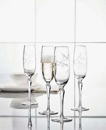 Nature-inspired motifs encircle the stylish shape of Hotel Collection’s etched floral champagne flutes, adding elegance to modern entertaining and special ocassions.