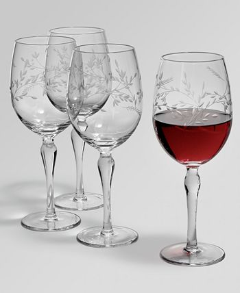 Nature-inspired motifs encircle the stylish shape of Hotel Collection’s etched floral wine glasses, adding elegance to modern entertaining.