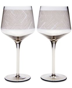 Enjoy a glass of wine in dramatic style with this Wine Glass, Set of 2 by Akwaaba Inns for Hotel Collection. Handwash only, soda lime glass, both glasses feature a high-contrast graphic design.