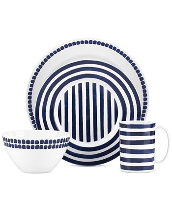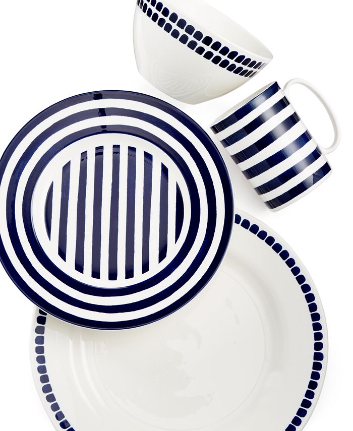 Give your table a touch of city chic in gleaming white porcelain with the Charlotte Street North 4-piece place setting. Inspired by one of London’s most celebrated historic districts, this pattern reflects a cosmopolitan sensibility in simple blue variegated dots and stripes. From kate spade new york.