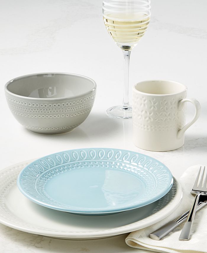 Set the stage for any meal with the modern design of kate spade new york’s Willow Drive Dinnerware Collection. Defined by eyelet-inspired detailing on creamy white glazed stoneware, this versatile collection lends a fresh, sophisticated feel to dining and entertaining.