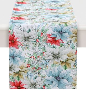 “Glad Tidings” is a chic and modern holiday reversible runner design. Dusty blue, mushroom, ruby red, and golden mustard watercolor poinsettias, placed on holly and a green-gray gingham pattern, create the epitome of a new take on a classic Christmas.