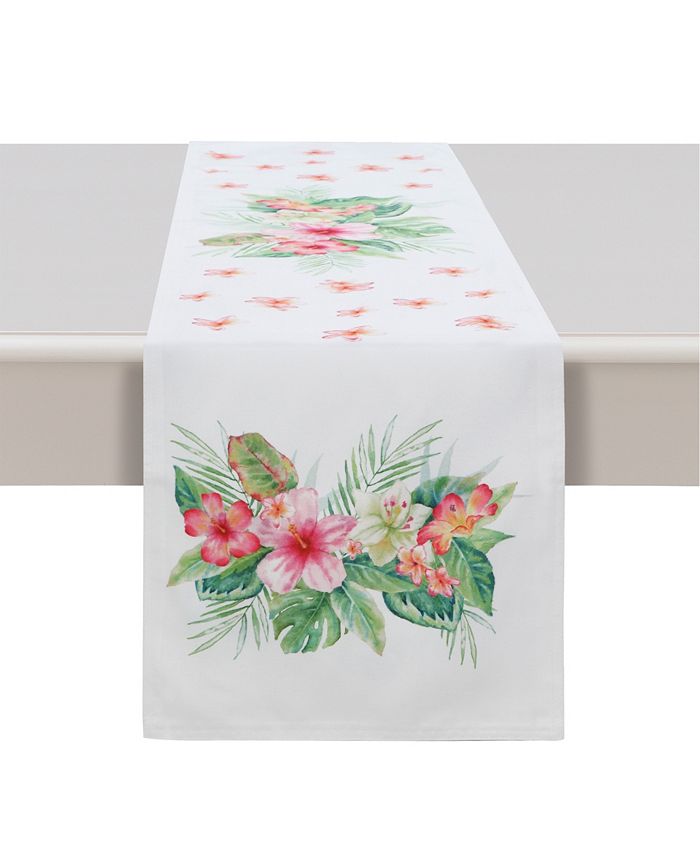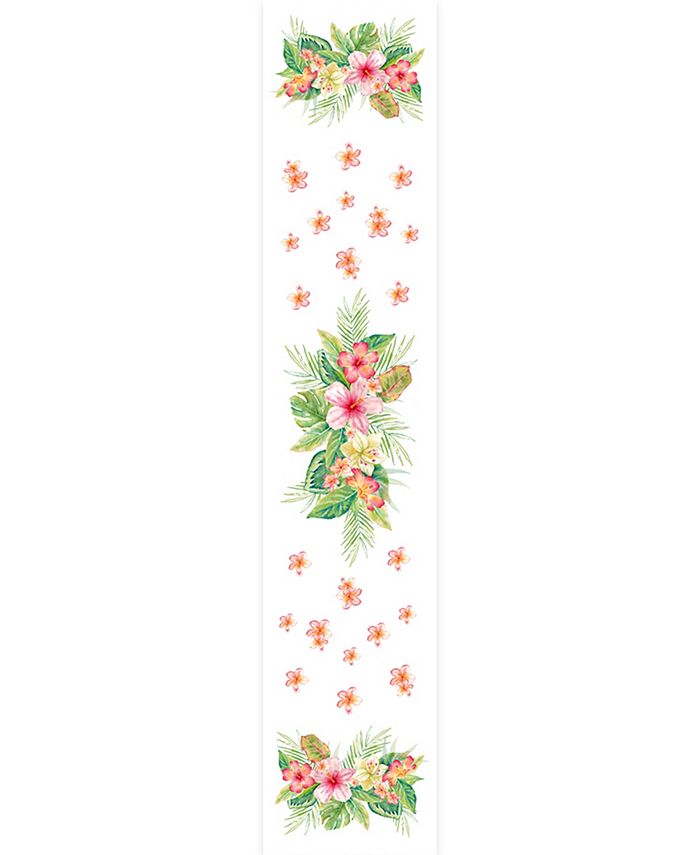 This tropical themed runner, “Tropical Island,” is a bright fun design that will liven up any dining space. This watercolor styled runner features vibrant pink, orange, green tropical flowers leaves against a white background. “Tropical Island” will bring a fresh Summer vibe into any home.