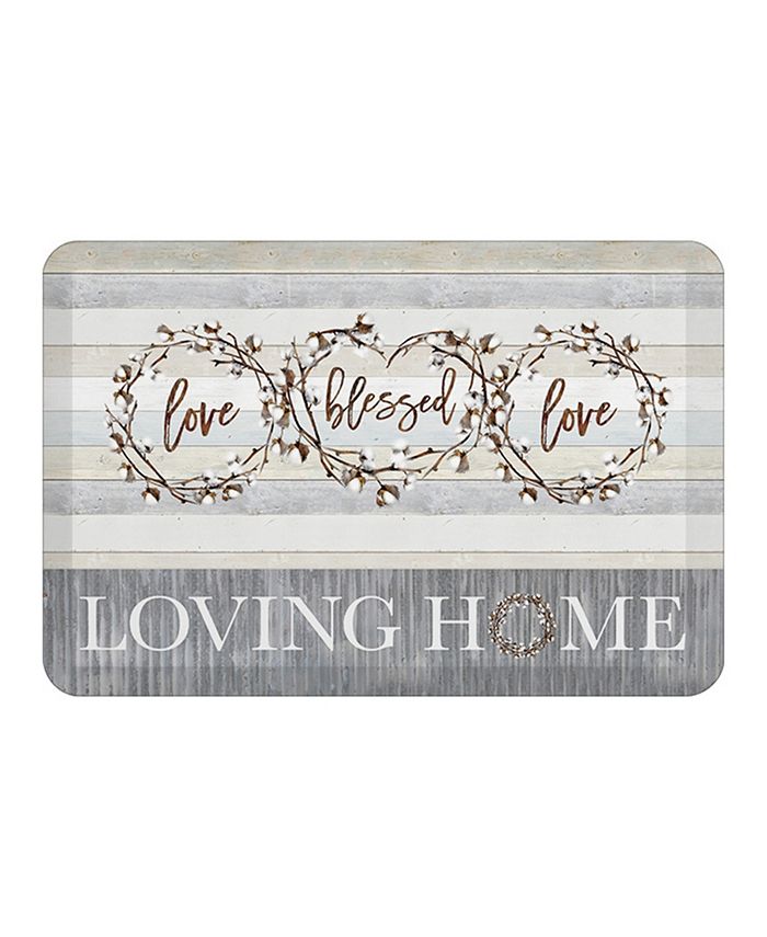 This rustic, farmhouse inspired accent floor mat, Loving Home, brings a soft, loving feeling into your home. The elegant design has beautiful cotton wreaths the words Loving Home against a soft color wood background. This serene mat will bring a gorgeous unique look to any room decor.