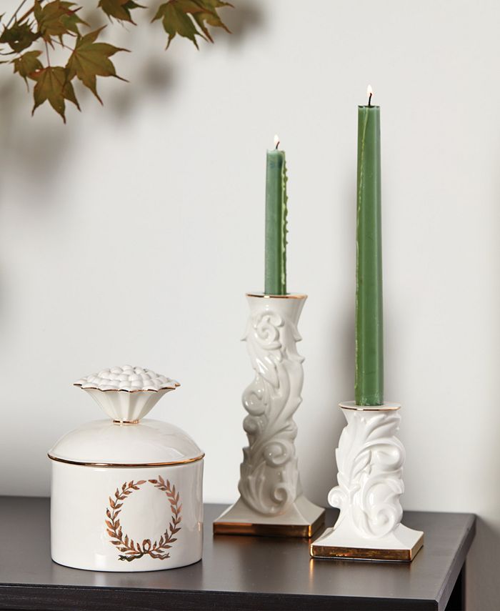 - Crafted of luxe glossy white porcelain, the collection reinvents the Lenox laurel leaf and cornucopia from our 1918 Autumn collection