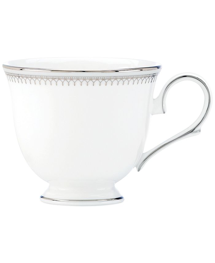 Spun with shimmering platinum, the Belle Haven cup by Lenox has all the elegance of white china – with a playful twist! Delicate beading and a band of soft pewter add to its enchanting style.