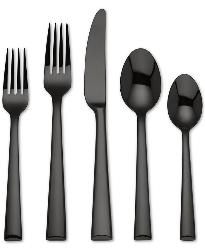 Shiny, black stainless steel brings a moody and modern accent to fine dining with this Colebrook place setting from Lenox.