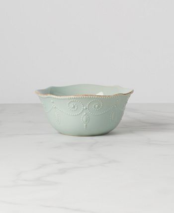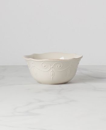 With fanciful beading and a feminine edge, this bowl from the Lenox French Perle dinnerware collection has an irresistibly old-fashioned sensibility. Hard-wearing stoneware is dishwasher safe and, in a soft hue with antiqued trim, a graceful addition to every meal.