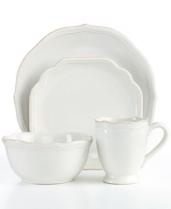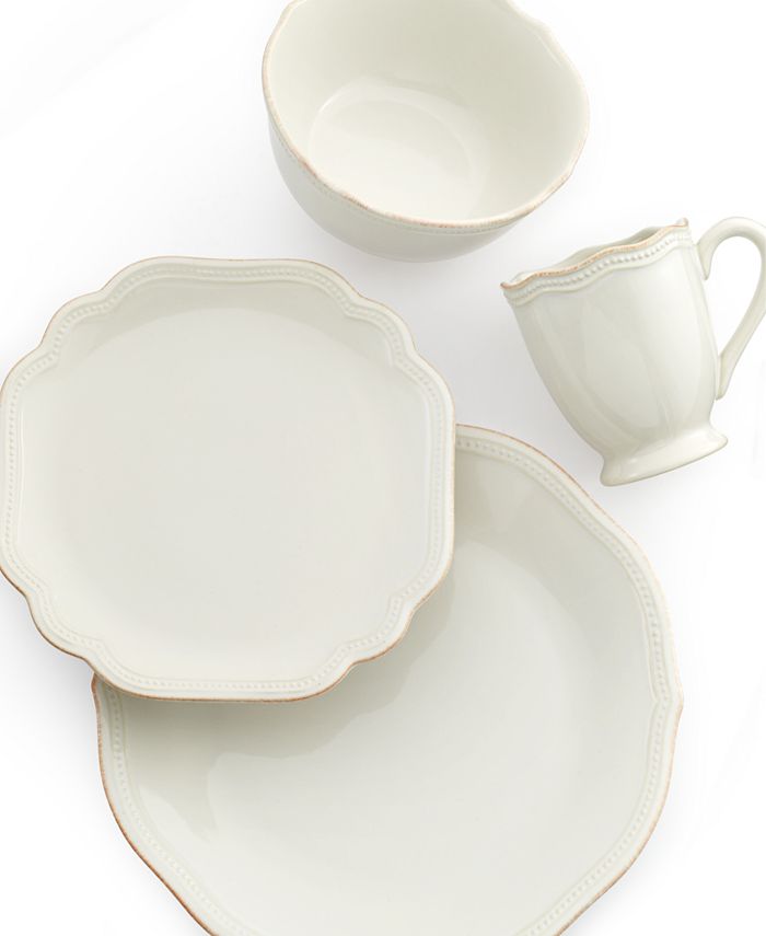 A vintage charmer, French Perle Bead dinnerware is shaped by delicate beading and scalloped accents in durable stoneware. Tea-stained edges add to the old-fashioned sensibility of a most-graceful Lenox place setting.