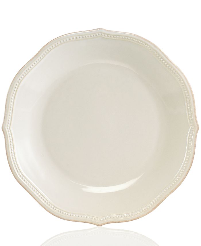 A vintage charmer, the French Perle Bead dinner plate by Lenox is shaped by delicate beading and a tea-stained and scalloped edge, all in durable stoneware. Pair with French Perle dinnerware, too!