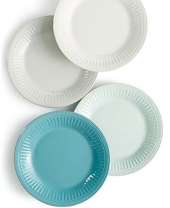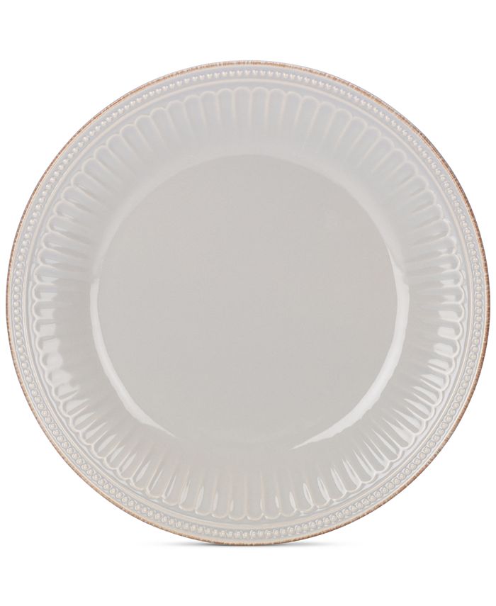 Elegant embossed grooves on light gray stoneware give this dinner plate by Lenox simple, yet sophisticated style for everyday dining with versatility.