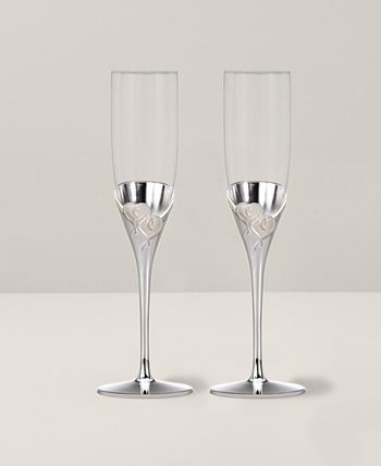 Toast your sweetie or favorite newlyweds with True Love. Interlocking hearts adorn elegant, silver-plated champagne flutes, a fitting way to commemorate every anniversary.