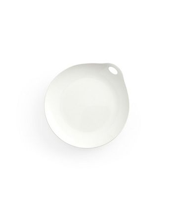 The portables dinner plate features clean lines in white stoneware with an open handle for easy serving and transporting. For versatile styling and storage, the dinner plate can nest with the portables round platter and salad plates. Dress it up for an upscale event, or down for everyday dining.