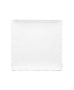 Cher Blanc is a light, thin, fine porcelain. Bright, pure white with a high-gloss glaze, the pattern features a subtle embossed latticework motif on the rim accented with a scroll and floral border