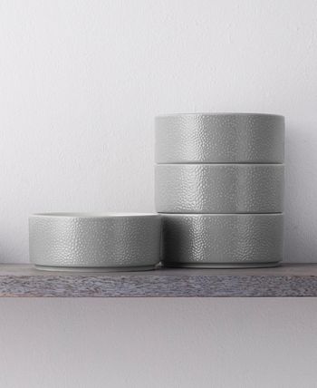 Distinctly modern, Noritake’s Colortex Stone Stax cereal bowls offer a clean, minimalist look in durable porcelain with a glossy pebble texture on the outside and bright-white glazed interiors. Each fits together to stack for space-saving storage.