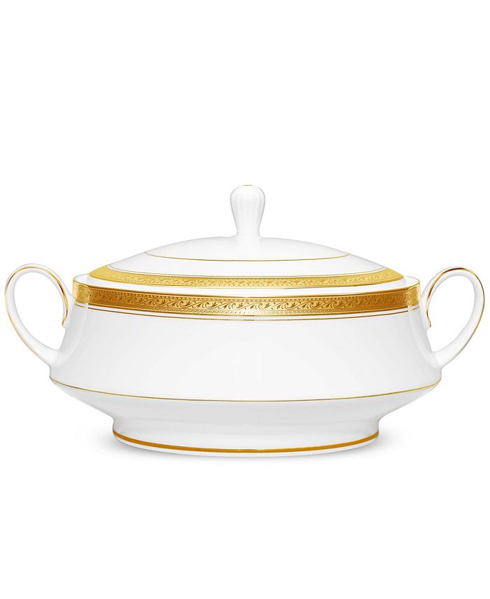 Crestwood Gold has a white body rimmed with a wide etched gold band to present a look of elegant simplicity. Gold Band, Dishwasher Safe, White Porcelain.