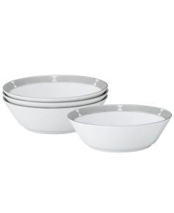 Eternal Palace features an interlocking stylized ogee design, presented in multiple sizes on different pieces for maximum impact. These modern elements are paired with solid presentations of a silvery-grey and classic platinum banding.