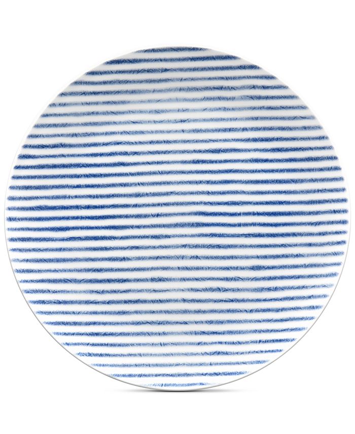 Soft blue stripes extend across a white porcelain background on the Coupe Stripe Salad Plate, part of Noritake’s mix-and-match inspired Blue Hammock Dinnerware Collection.