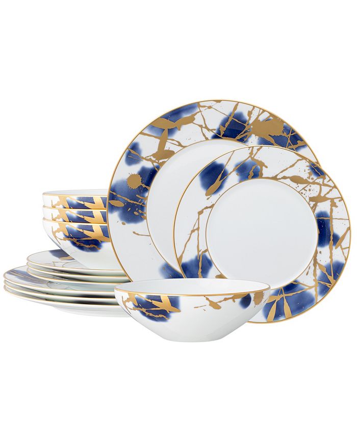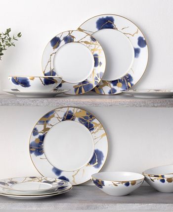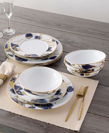 Jubilant days gold-tone is an abstract celebration, featuring a base of random swatches of cobalt blue, and splashes of shimmering gold-tone on white porcelain. Jubilant days gold-tone offers place setting components as well as an array of serving pieces and accessories.