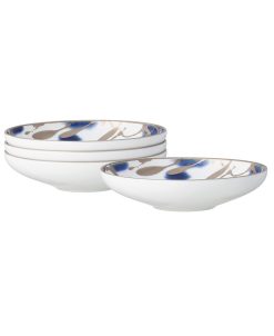 Jubilant days platinum is an abstract celebration, featuring a base of random swatches of cobalt blue, and splashes of shimmering platinum on white porcelain. Jubilant days platinum offers place setting components as well as an array of serving pieces and accessories.