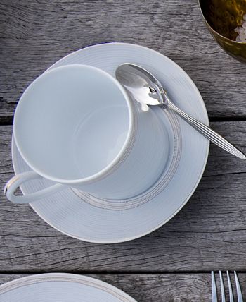 Linen road was inspired by the texture of linen fabric. The soft feeling of the fabric texture is enhanced with bands of implied gold-tone embroidery on white porcelain. Linen road offers place setting components as well as an array of serving pieces and accessories.