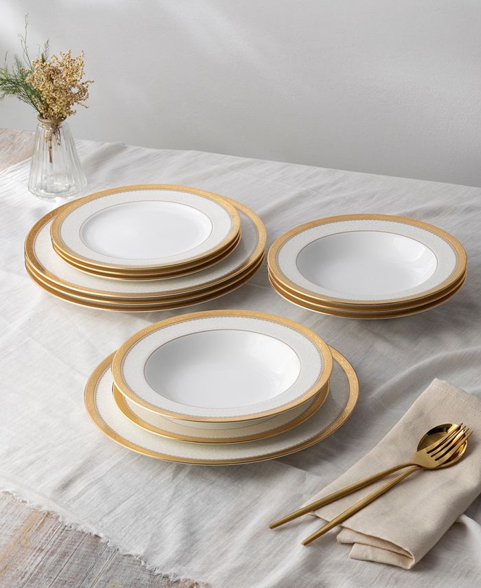- Set includes – 4 dinner plates, 4 salad plates, 4 soup bowls