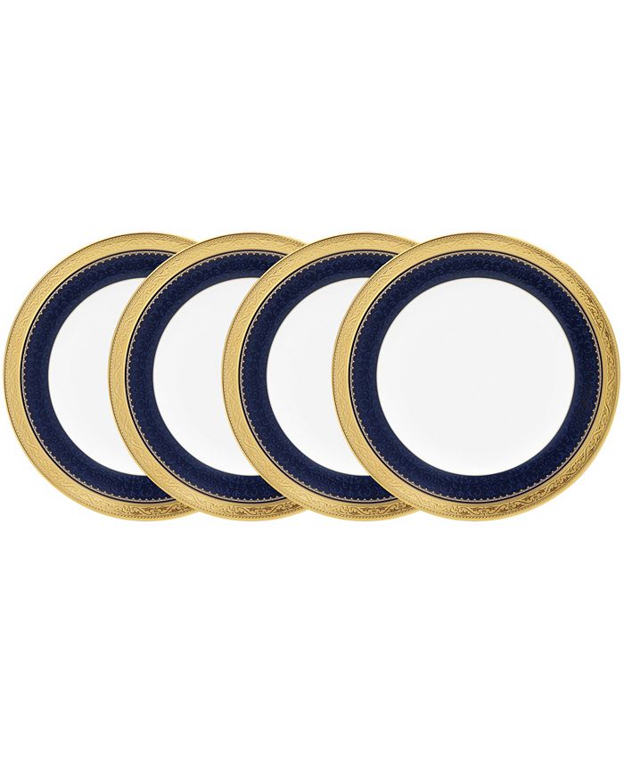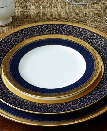 Odessa cobalt gold features a wide, etched gold-tone band, coupled with a wide inner band of delicate soft blue floral scrolls over a deep, cobalt blue. Crafted in fine bone China, Odessa cobalt gold offers place setting components as well as an array of serving pieces and accessories.