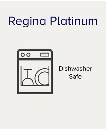Regina Platinum features a white-on-white, raised enamel, scroll-like design edged in etched platinum for a simple, classic look. Platinum Band, Dishwasher Safe, White Porcelain.