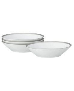 Regina platinum features a white-on-white, raised enamel, scroll-like design edged in etched platinum for a simple, classic look. Crafted in white porcelain, Regina platinum offers traditional place setting components, additional items, and a wide selection of serving pieces.