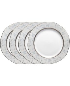 Regina platinum features a white-on-white, raised enamel, scroll-like design edged in etched platinum for a simple, classic look. Crafted in white porcelain, Regina platinum offers traditional place setting components, additional items, and a wide selection of serving pieces.
