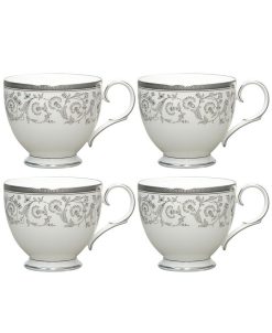 Summit platinum is a mix of textures and visuals, pairing traditional and modern elements on bone China. Incorporated for more depth are touches of a finely speckled gray and monochromatic looping floral elements.