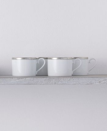 Whiteridge Platinum features multiple design elements. Items crafted in white porcelain feature ultrafine white-on-white raised ridges, which on selected items are alternated with a light grey. The wide outer platinum band is etched with waves flowing around the edge of each piece.