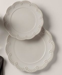 Lenox Dinnerware Stoneware French Perle Groove Dove Grey Dinner Plate, Created For Macy’s