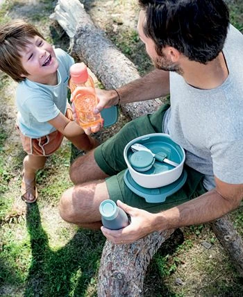 - Set includes – main bowl, tray, dressing container, and travel flatware set