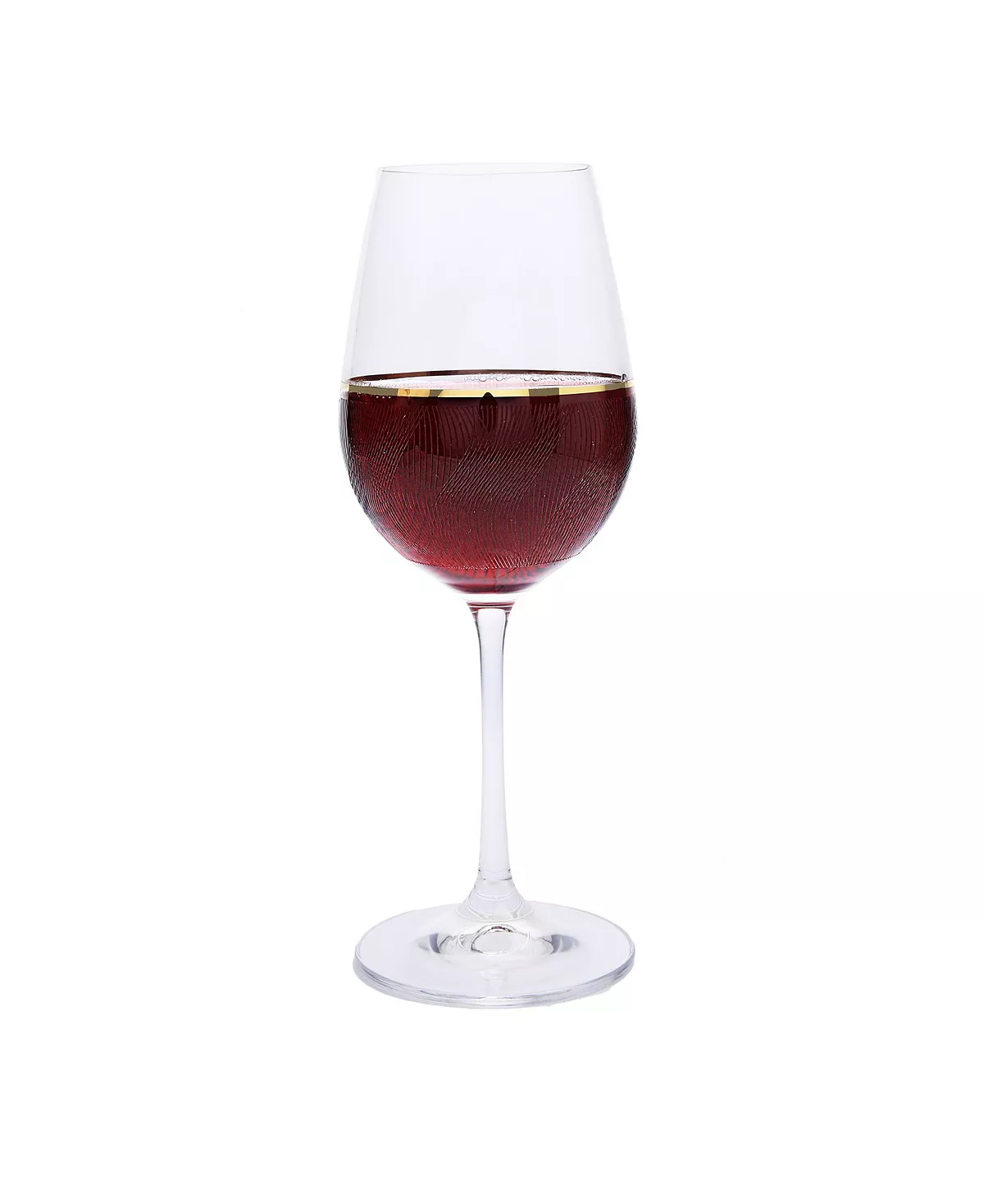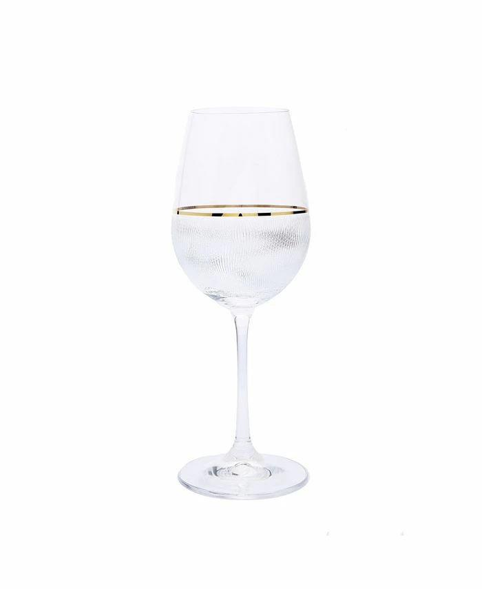 A dainty gold strip surrounding the cup, this pristine designed glassware set is a joyous addition to any elegant event. They are sold in a set of 6 and are crafted with lead-free materials.