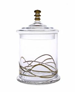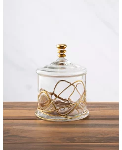The classic jar by Classic Touch features artistic 14k gold swirl design. Its attractive sparkle combined with its unique dimensional lid serves as the perfect piece to fill for any occasion. Its crystal clear glass makeup adds to the attraction of any miniature confectionary or what else filled inside.