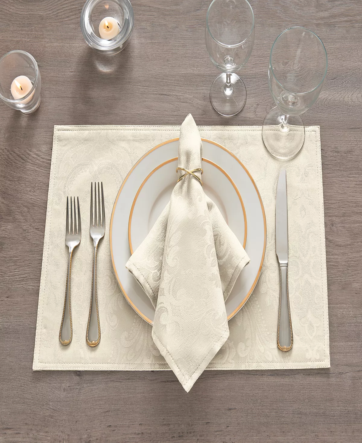 The Caiden Woven Damask Placemat is the perfect solution to your decorating and table linen needs. Delicately woven jacquard damask design gives it the versatility of a solid, with a touch of fashion. Excellent for special occasions, events, and everyday use.