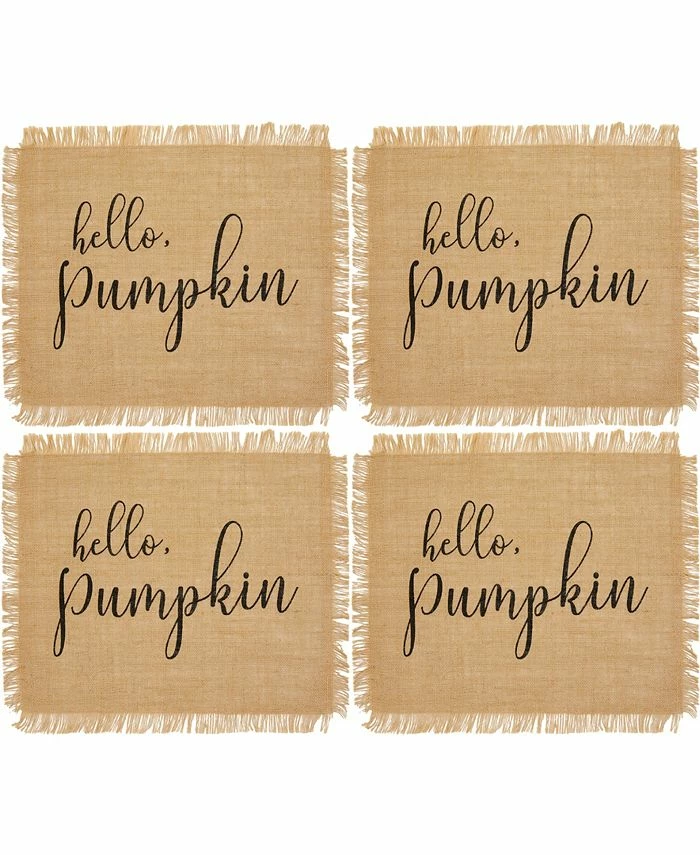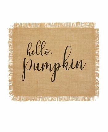 Stylish, rustic and beautiful the Farmhouse Living Collection offers everything you need to create the shabby chic, modern country home. These fashionable fall inspired placemats are made from premium quality fabrications and feature a “hello pumpkin” cute saying in trendy script. Excellent for special occasions, events, parties, and everyday décor use. Fringe edges add style and charm. Sold as a set of four placemats measuring 13×19 each. Coordinate to all the items in our Farmhouse Living collection including tablecloths, placemats, pot holders, kitchen towels, kitchen mats and window treatments. 100% burlap. Spot clean only.