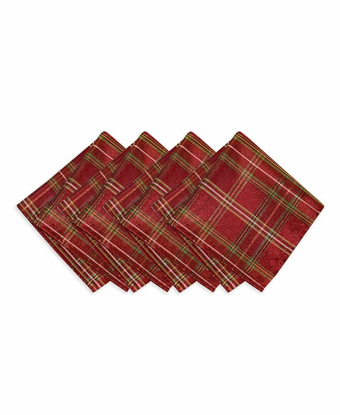 A rich, traditional Christmas-colored lurex plaid pattern, the Shimmering Plaid table linens collection is the ideal addition to your holiday décor. These eye-catching table linens are as functional as they are beautiful. With their easy care properties, once the party is over you simply machine wash and dry them and they are ready to be placed back on your table. 100% Polyester. Machine wash cold gentle cycle. Tumble dry low. Cool iron as needed. Made in China.