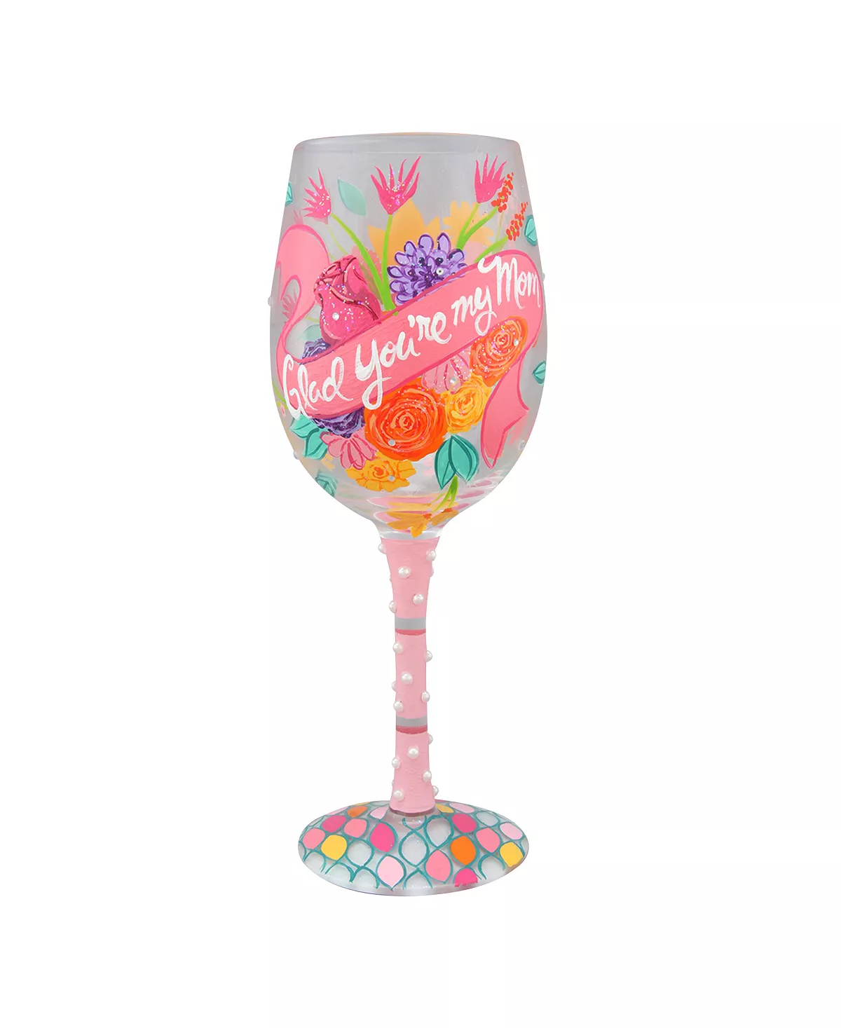 This lovely wine glass is a marvel of color and care. This gorgeous cup will serve as a beautiful reminder of love to the special woman in your life. Illuminated in bright flowers, this goblet is the perfect prop for the best MOM ever.
