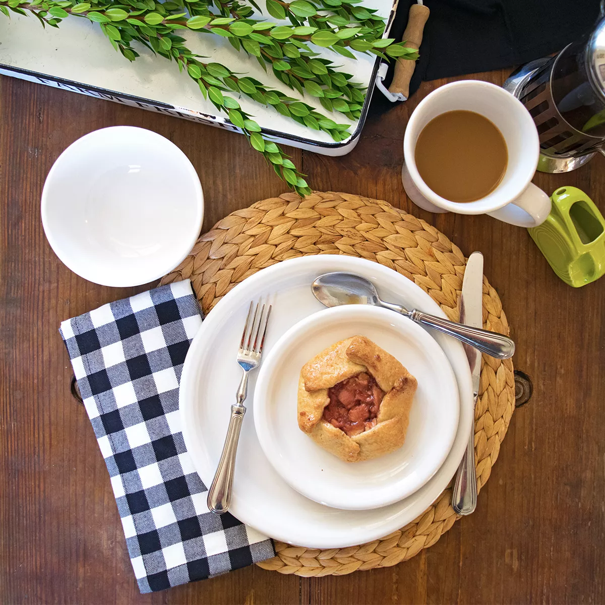 - 7 1/4″ Salad Plate, 10 1/2″ Dinner plate, 22 oz Bowl