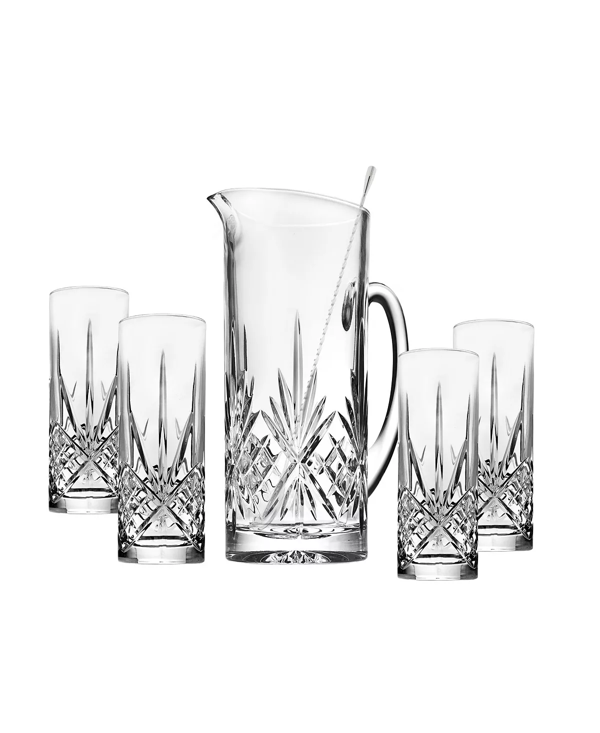 Crystal elegance meets the look of bartending expertise with the polished patterning and essential pieces in this Tom Collins beverage set from the Godinger Dublin Mixology Collection.