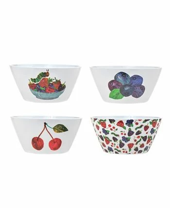 Eric Carle children’s collection featuring a set berry bowls with four distinct designs.