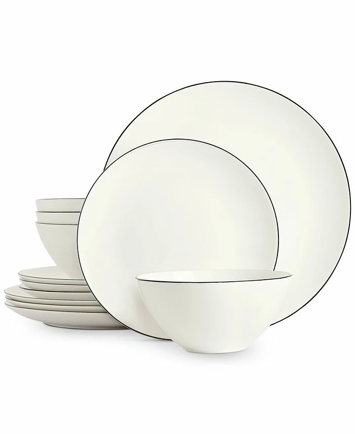 Bring the two-tone trend to your tablescape with the elegant outlines and modern shapes of the Black Line bone china dinnerware service from Hotel Collection.