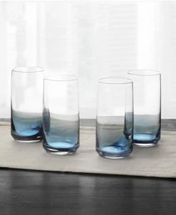 Serve up drinks in modern style with the clean lines of Hotel Collection’s set of four Blue Ombre highball glasses, each featuring a brilliant blue-tinted base that tapers off to clear glass.