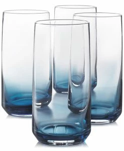 Serve up drinks in modern style with the clean lines of Hotel Collection’s set of four Blue Ombre highball glasses, each featuring a brilliant blue-tinted base that tapers off to clear glass.
