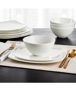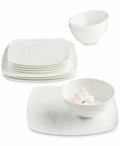 Redefine your dining experience with the modern, geometric shapes of Hotel Collection’s Soft Square dinnerware service for four in classic white bone china.