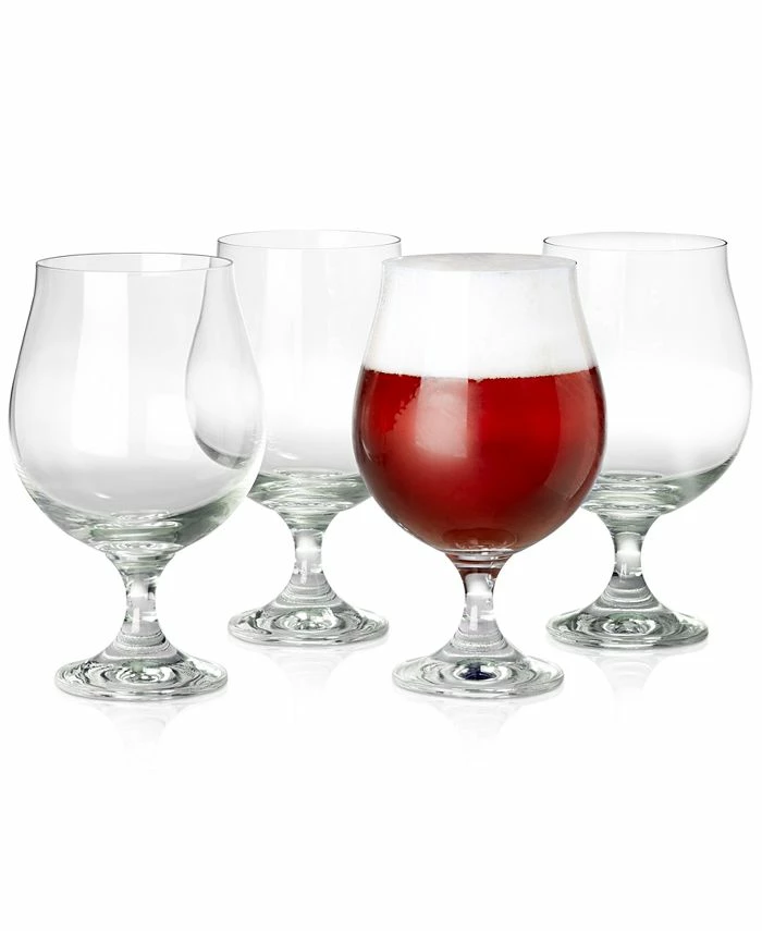 Designed for stylish socializing, Hotel Collection’s set of four beer glasses takes entertaining to the next level with a rounded, stemmed design and generous capacity.