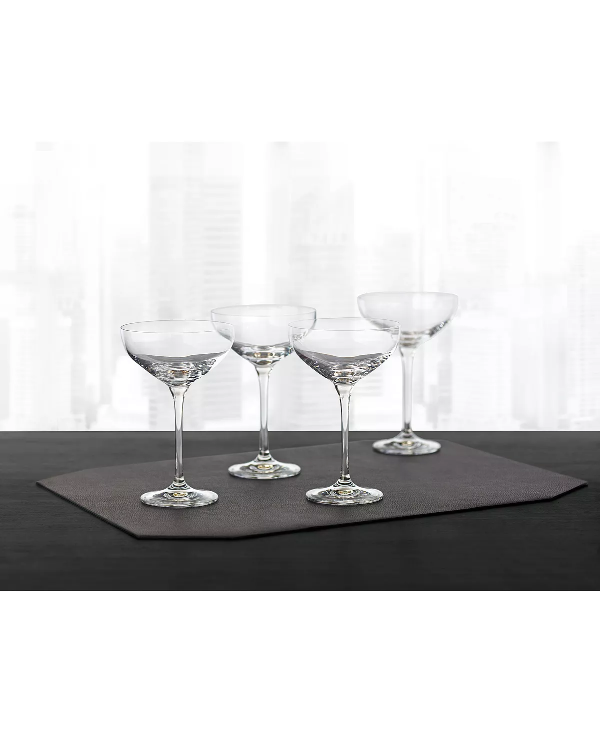 Slender stems and wide bowls create the classic style of the Hotel Collection champagne saucer set, a timeless testament to good taste.
